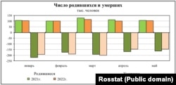 430 тысяч – это падение сильнее, чем за первые пять месяцев прошлого, 2021 года, период, в который естественная убыль населения России стала рекордной за все постсоветское время: свыше миллиона человек.